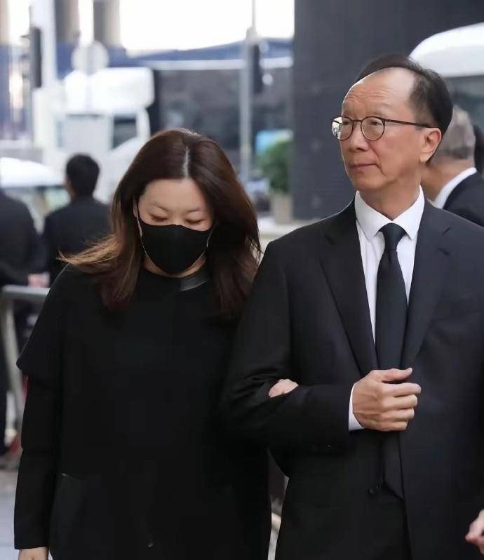 只见梁锦松满脸哀伤地走在前头,而伏明霞则紧挨着他,站在他的右后侧。